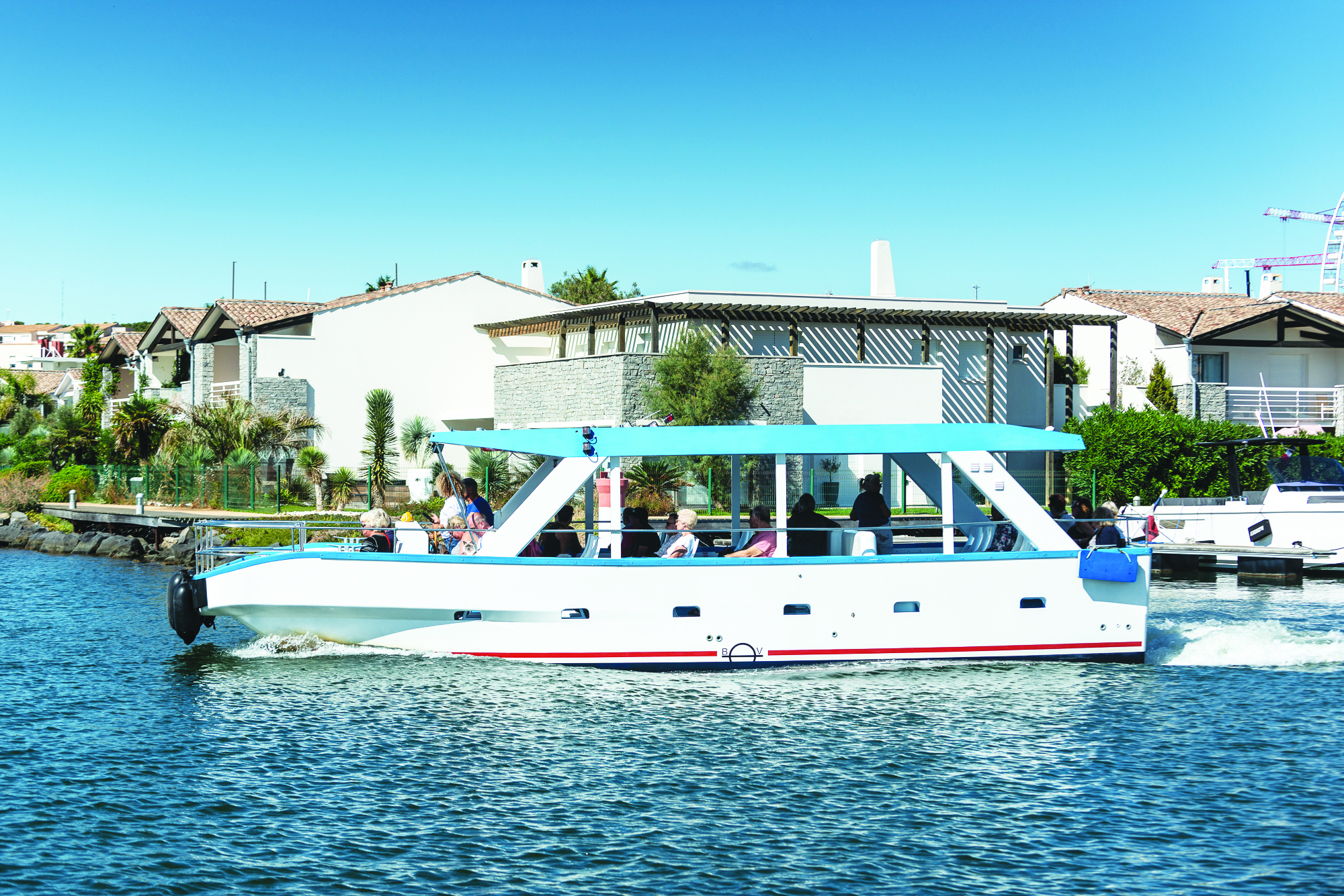 Une première embarcation avec une capacité d’accueil de 14 passagers est inaugurée. Avec la renommée du Cap d’Agde qui attire un très grand nombre de visiteurs, les résidents éphémères ou de longue durée apprécient déjà la facilité d’utilisation du bateau, pour rejoindre en quelques minutes leurs centres d’intérêt.